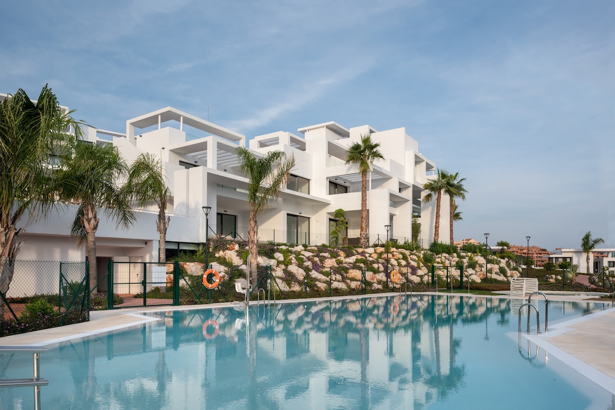 Moderno apartamento de diseño completamente nuevo, situado en una urbanización llamada Jardín Botánico, en plena naturaleza y a tan sólo 15 minutos en coche de Puerto Banús. La urbanización se encuentra rodeada de naturaleza y un rio cerca, pero con todas las comodidades de de la ciudad y la playa a sólo 10 minutos en coche. También disponemos de 3 piscinas exteriores y 1 piscina interior climatizada (abiertas según temporada) jacuzzi, sauna, pista squash, tenis, padel, gimnasio. Ideal para 4.