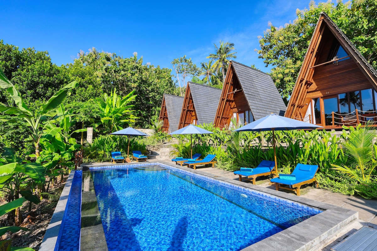 緑豊かなジャングルに囲まれた居心地の良いコテージ、ペニダ島のプール付きトロピカルジャングルリトリートに滞在しましょう。専用プールでリラックスし、自然の穏やかな雰囲気をお楽しみください。ゆったりとした時間を過ごしたい方にも、ペニダ島の美しさを発見したい方にも、ここは理想的な旅行先です。