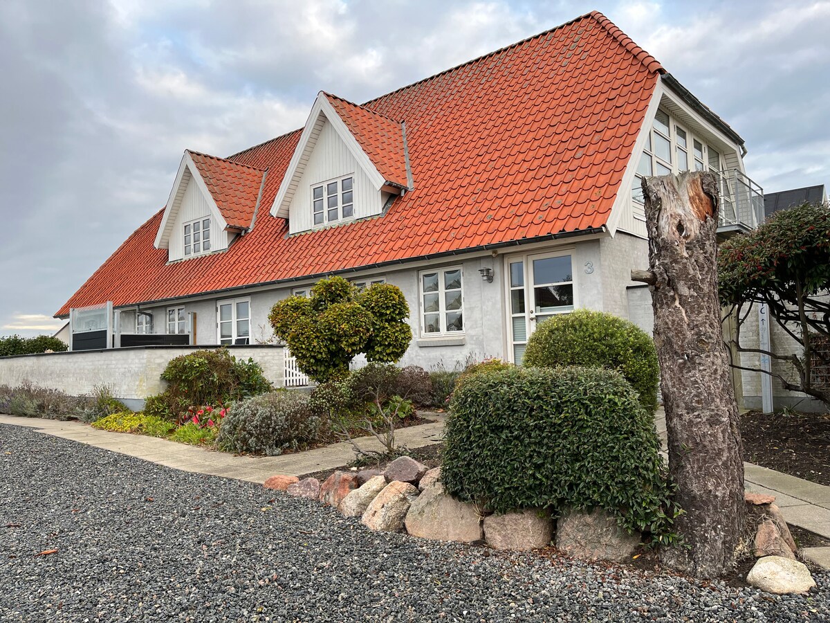 古いデンマークの農場にある新しく改装された3ベッドルームのアパートで、家族みんなで過ごせるお部屋です。 起きたら、なだらかな畑の景色が広がります。ハイキング、サイクリング、観光、ビーチでの休暇に最適な拠点です。 家の半分を借りることになります。防音ドアが2つの半分を分けています。 キッチン、バスルーム、東向きの庭園を備えた完全に独立したアパートです。