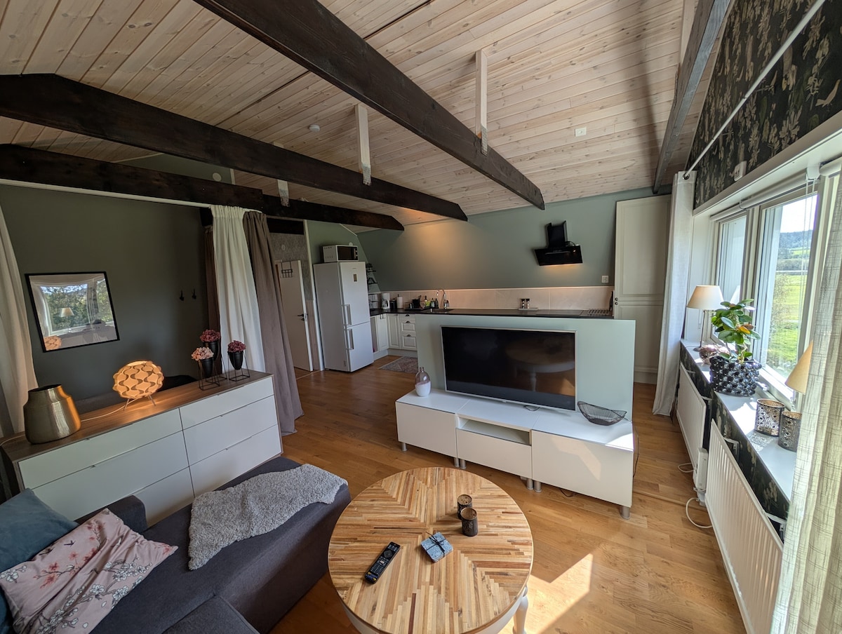 スケルスタのヨーナーケルにある魅力的なコテージは、平和な隠れ家であなたをお迎えする準備ができています。緑地と広大な畑に囲まれたこのコテージは、田舎の静けさと現代的な快適さの完璧なバランスを提供します。子供に優しい雰囲気で、田舎の平穏を求める家族に理想的な場所です。ニューケーピングに近いので、街の観光スポットやアクティビティを探索することもできます。 -コルムアーデンまで約30分 -リンクビーバデットまで約10分 - ゴルフ場まで5分
