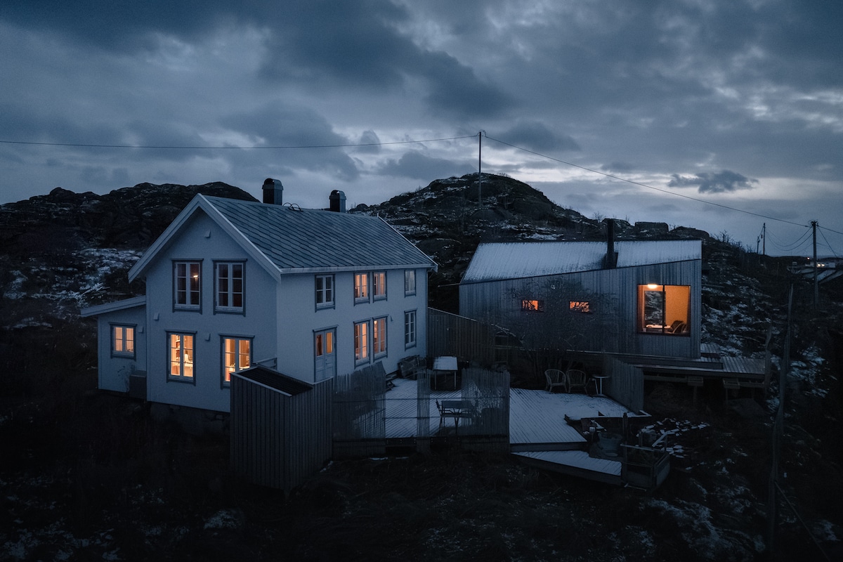ここは本当に素晴らしい場所です。完全に改装された古い漁場です。広さは180平方メートルで、桟橋は200平方メートルです。家には必要なものがすべて揃っており、今日では新しい高級モダンハウスのように見えます。2つのバスルーム、バスタブ、大きなベッドを備えた4つの寝室、モダンなキッチン、とても良いWi-Fi、65インチのテレビ、洗濯機と乾燥機、暖炉、専用サウナがあります。床に窓があり、家の半分は海に面しています。近くに素敵なボートレンタルがあります。詳しくはInstagの「Skagenbrygga」をご覧ください。