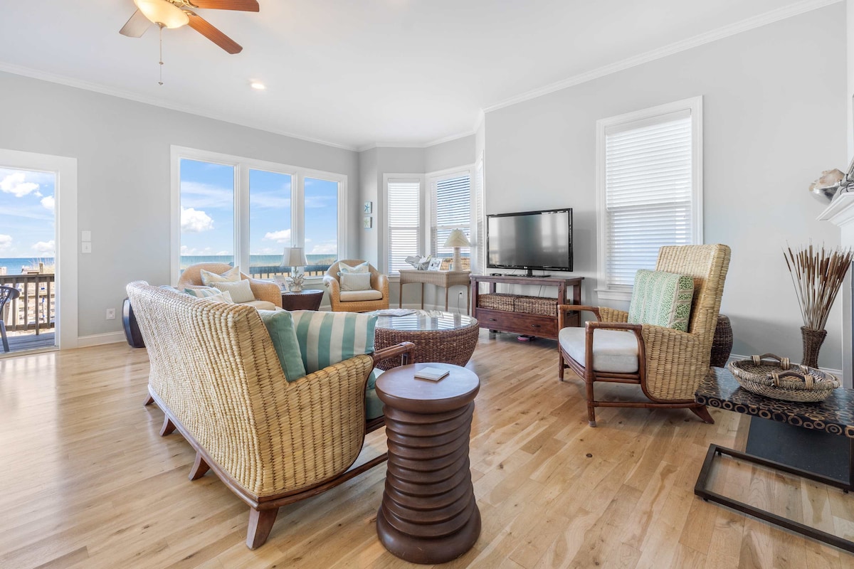 Salubrious Viewはその名の通りです。 マッド・インレットのサンセット・ビーチの西端にある、豊かな海の河口を見渡すことができます。 6つの寝室(4キング、2クイーン、1二段ベッド)で14人が快適に過ごせ、フルバスルーム4室とハーフバスルーム2室があります。 この大きな家はオープンコンセプトで、グルメキッチン、ダイニングエリア2つ、大きな集会エリア2つ、エレベーター、豊富なプライベートスペースがあります。 5つのデッキからは、海、沼、バード島、沿岸水路、素晴らしい夕日の広大な景色が見渡せます。