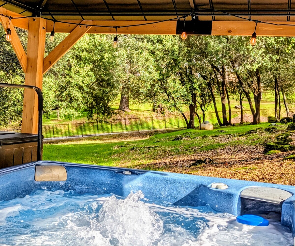 Escape to our stylish and inviting mountain getaway in our private, newly furnished and cozy home. Nestled amidst the breathtaking sunset views of the lower Sierra mountains, this space is perfectly designed for comfort and convenience. As you step inside, you'll be greeted by a modern interior adorned with tasteful decor and thoughtfully curated amenities. Our 3 bedroom retreat offers plush bedding, full kitchen, luxury spa, fire pit and game room all designed to make your stay unforgettable.