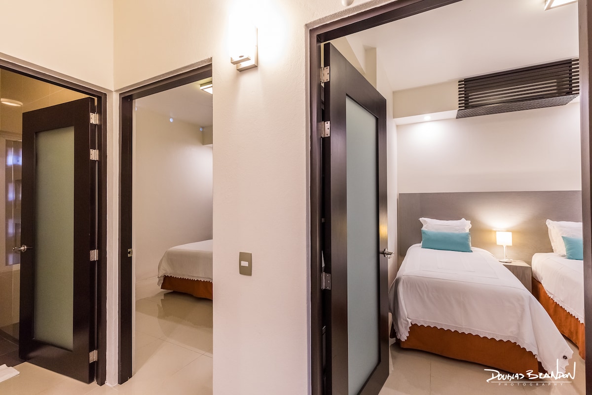 LA PRIMAは、お一人の方や新しい恋人たちに最適です。実用的で快適なデザインになっており、休息や仕事をするためのスペースも確保しています。パティオとフロントデスクにアクセスできます。 - 19平方メートル - 竹製の寝具を備えたクイーンサイズベッド。 - ブルエンの朝食。 シャワー付きの屋内バスルーム。 メキシコ製の手作りオーガニックバスアメニティ。 無料Wi-Fi - 貸金庫。 ワークデスク