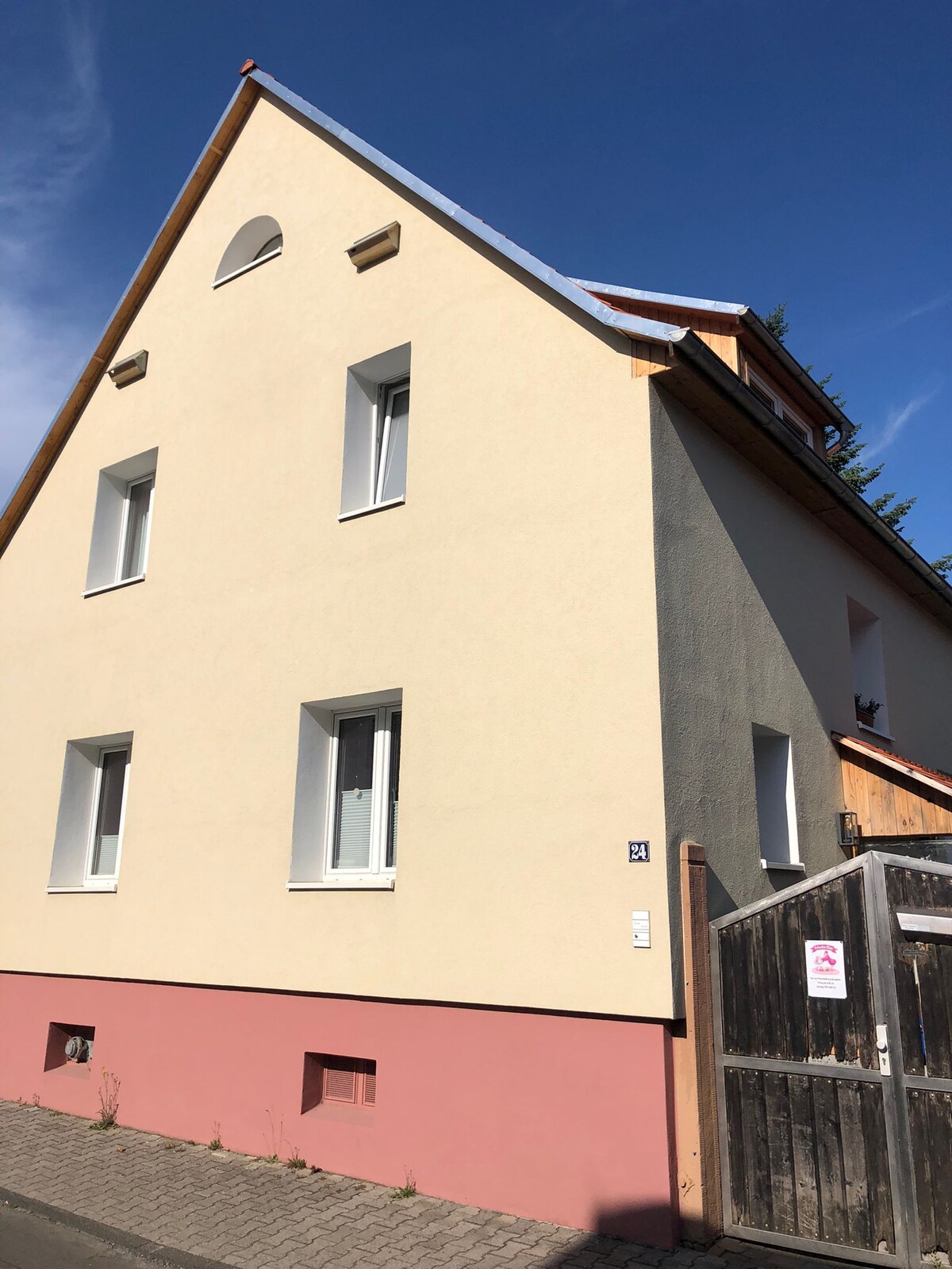私たちの愛情を込めて装飾された地下のアパートメントは、2人を収容できます。ボックススプリングベッドを備えた広いベッドルーム、モダンなバスルーム、設備の整ったキッチンがお客様をお待ちしています。天気が良ければ、テラスでリラックスできます。 アパートは、私たちが住んでいる一軒家の地下にあります。私たちは子供連れの家族としてここに住んでいます。 わずか5分で自然の中に出られます。犬と一緒の散歩にも最適です。 皆様のお越しをお待ちしております!