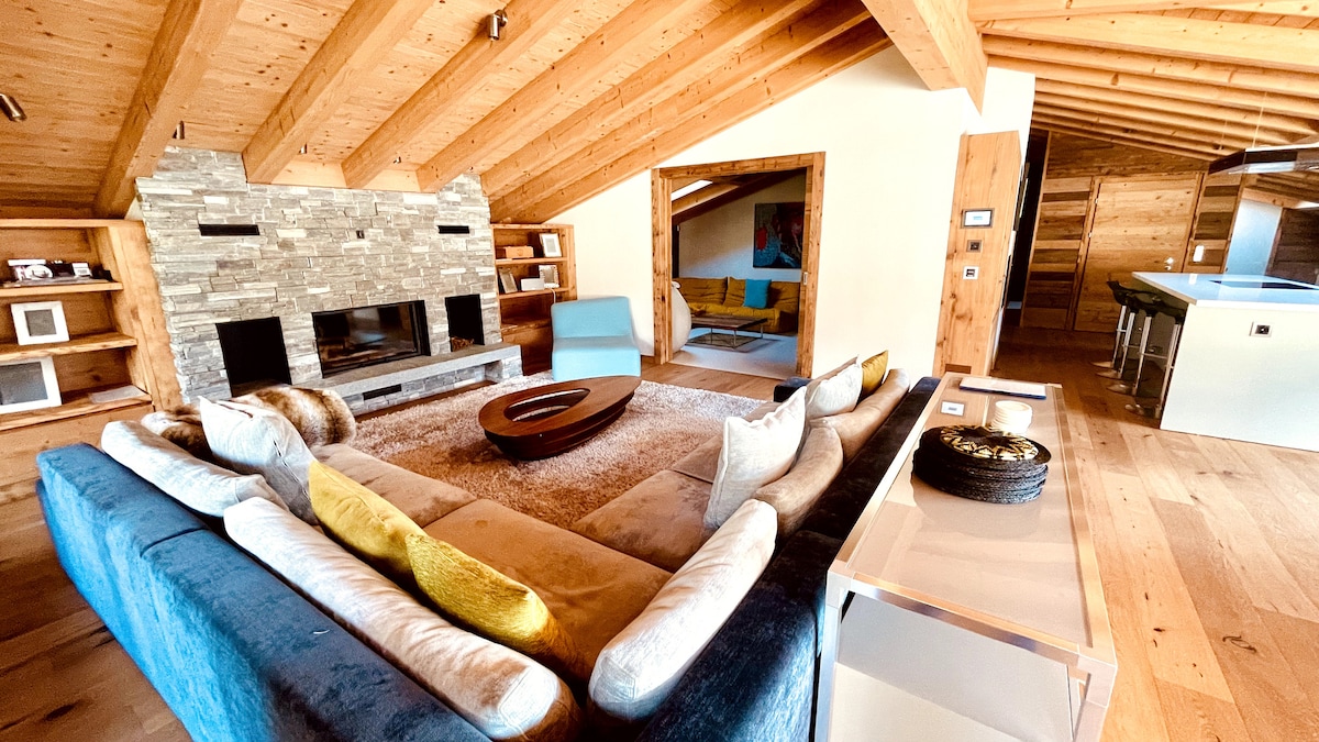 Introducing a fully serviced Luxury Penthouse in Flims Waldhaus. Exceptional panoramic views, spacious and modern, this is Alpine elegance at its finest. Located minutes from Lake Caumasee, it is tranquil while still being close by cafes, restaurants and the ski lift in Flims. Up to ten guests can enjoy this generous space and the open plan living makes for glamorous entertaining. A private chef can be requested and your concierge team is on hand to help with any enquiries or requests.