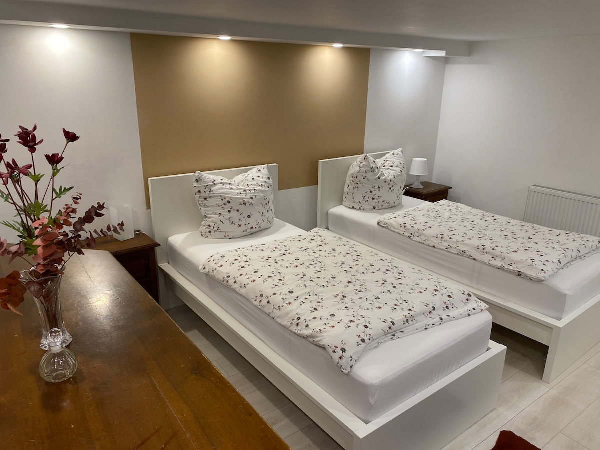 この特別で静かな宿泊施設でリラックスしてください。ゲストハウスはロスバッハの歴史的な中心部にあります。田舎ですが中心部に位置し、ヴェッテラウの端にあり、タウヌスの門の前にあり、フランクフルトのすぐ近くにあります。 愛情のこもった細部で、ここで歓迎されていると感じることができます。屋外サウナを備えたのどかな中庭、ジョガルームを備えた改装された納屋。 2017年から2020年(コロナウイルスの開始)まで、私はAirbnbから「スーパーホスト」に選ばれました。