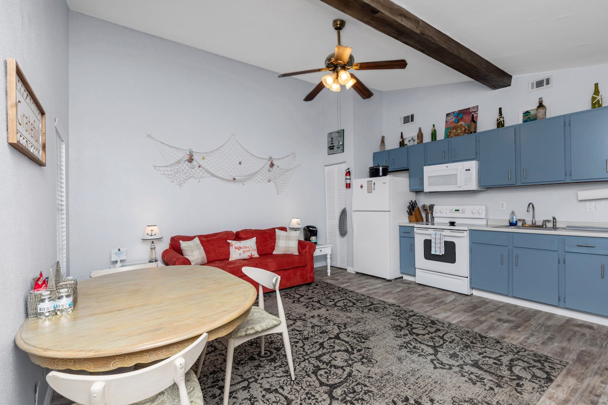 Welcome to The Salty Pirate, your waterfront vacation paradise! Kick back & relax in our calm, stylish condo featuring a king size bed, luxury bathroom & kitchenette. Relax in bed, enjoy the boats cruise by or watch the 65 inch TV. The waterfront balcony entices you to read & relax. Enjoy the resort style pool or reserve the 2-seater kayak (when available) provided for you to explore the waterway. Downtown restaurants & bars are walking distance & the white sugar sand beaches are 2 miles away!