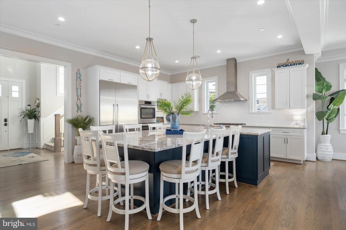 ミッドタウンとダウンタウンの間のボードウォークとビーチからわずか2ブロック(徒歩3 ~4分)の26th Stにある、新しく改装され、美しく家具が揃い、装飾された豪華な4ベッドルーム、3.5バスルームの家にご宿泊いただけます。正面のダブルバルコニーからは、美しい夕日、ベイビューをリラックスしてお楽しみいただけます。ジョリーロジャース遊園地や多くのミニゴルフコースからすぐ近くです。 徒歩圏内にはレストラン/バー、ショッピング、ナイトライフがあります。