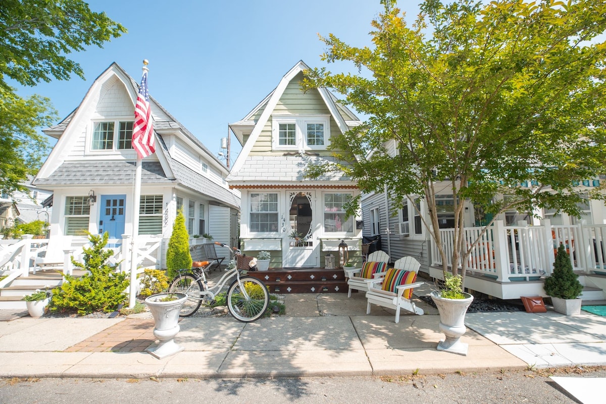 HGTVスタイルのビーチコテージでの休暇。1階のユニット。ステンレス製家電を備えたハイエンドのキッチン。寝室3部屋/浴室2部屋。車道に駐車スペース1台分、無料の路上駐車。ビーチまで5軒。ボードウォークの始まりまで4ブロック。屋外シャワー2台をご利用いただけます。ベッドリネン、タオル、自転車、ビーチ用品はすべてご用意しています。ダイニングルームの外にある別室にランドリーがあります。ビーチタグが4枚用意されています。