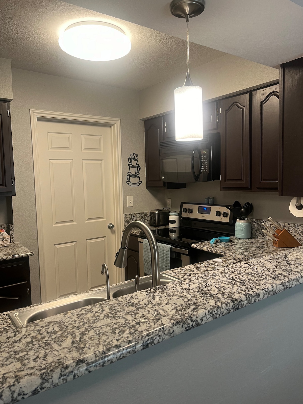 キッチン/ダイニング/リビングルームがオープンフロアの広々とした1ベッドルーム1バスルームのコンドミニアムです。 私たちのユニットは新しく改装されており、無料Wi-Fi、新しい家電、電子レンジ、清潔なリネン類とタオル、そしてクローゼットにはアイロン/アイロン台などの追加のものが備わっています。 寝室にはクイーンベッド、デスクがあり、各部屋には複数のストリーミングアプリにアクセスできるAmazon Fireスマートテレビとリモコンがあります。 小さなパティオはリビングエリアの外にあり、駐車場から車がはっきり見えます。 敷地内のランドリーは徒歩すぐです。