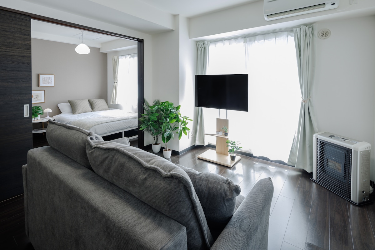 札幌中心部築浅物件|すすきの徒歩圏内|温かみのあるお部屋で快適な滞在|ゆったりソファ【SR202】