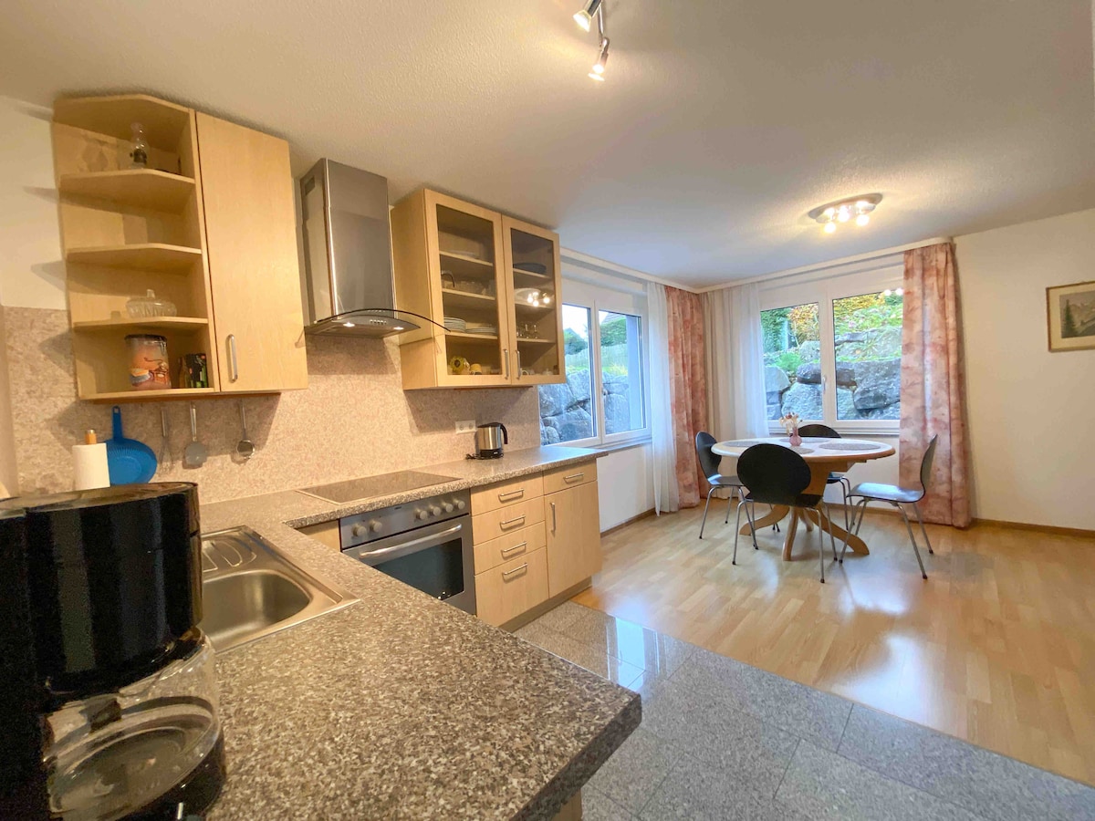 アパートはラインフェルデン(バーデン)に属するカルザウの小さな地区にあります。 農場の動物たち(馬/羊/猫/犬/ニワトリ)を見渡せる約200年前の農家で、素晴らしいくつろぎのひとときをお過ごしいただけます。 車/電車で20分でバーゼルに行くことができます。 ボイゲン駅は徒歩圏内(1.5 km)にあります。すぐ隣には子供の遊び場があり、森の中には散歩やサイクリングに最適なルートがあります。私たちのガイドブックをご覧ください!