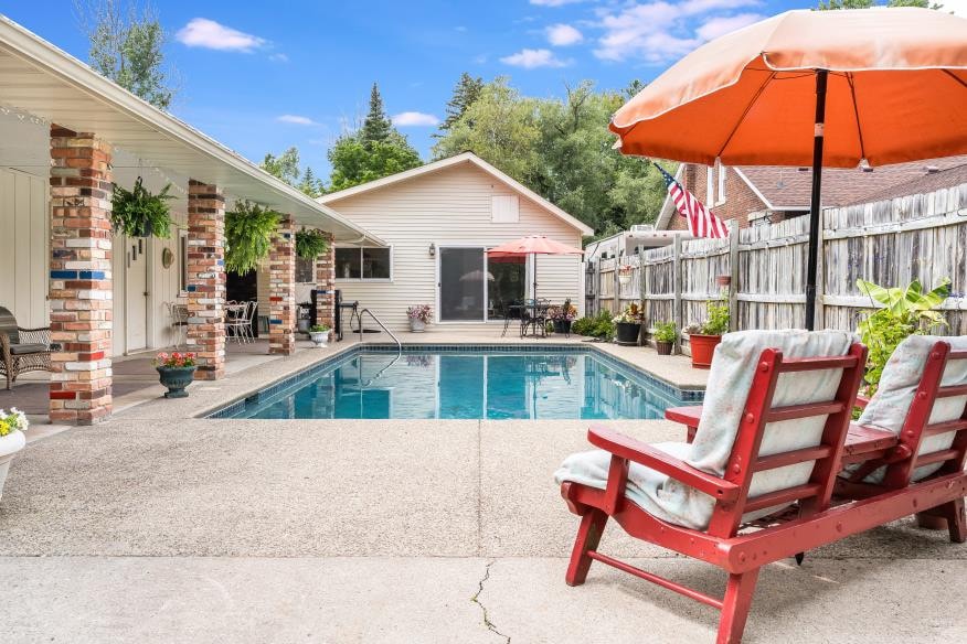 If you need a spacious retreat for family and friends, this is it! Our cottage has 8 beds, an in-ground pool with a covered patio, a fire pit, and a large yard with toys for all ages. Surrounded by 5 golf courses, state parks, rivers, and just one block from breweries and entertainment. This unique stay includes full access to both homes on the property—The Bunk House and The Main House—offering a combined 5 bedrooms. The Bunk House is closed through December through mid march.
