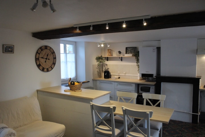 60㎡のアパートメント 直接アクセス 1~2名様と乳幼児向け テレビ付きのダブルルーム テレビ付きのリビングルーム キッチンとダイニングエリア(冷蔵庫、オーブン、電子レンジ、IH調理器、食器など) バスルーム(シャワーとバスタブ) 独立したトイレ リラックスコーナー(資料、ボードゲームなど) 専用テラス ユーロ・ヴェロ3の近く、2024年から「Accueil Vélo」のラベルが付けられた宿泊施設 家のすぐそばからハイキングコースとVVTコースが始まります。