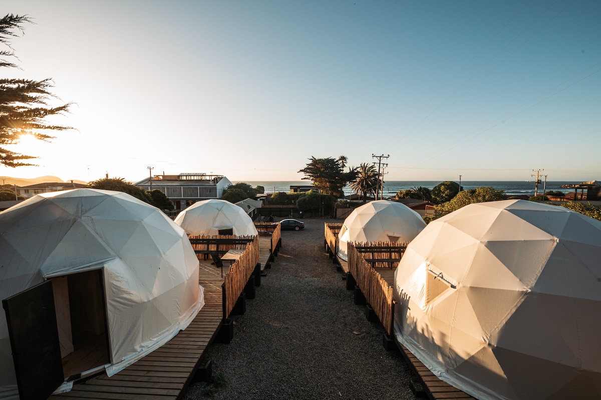 Nuestras cabañas en forma de domos geodésicos se encuentran al lado de la playa y vista al mar de Punta de Lobos. Están a 100 m de la playa. Lugar tranquilo donde solo se escucha el sonido del mar.