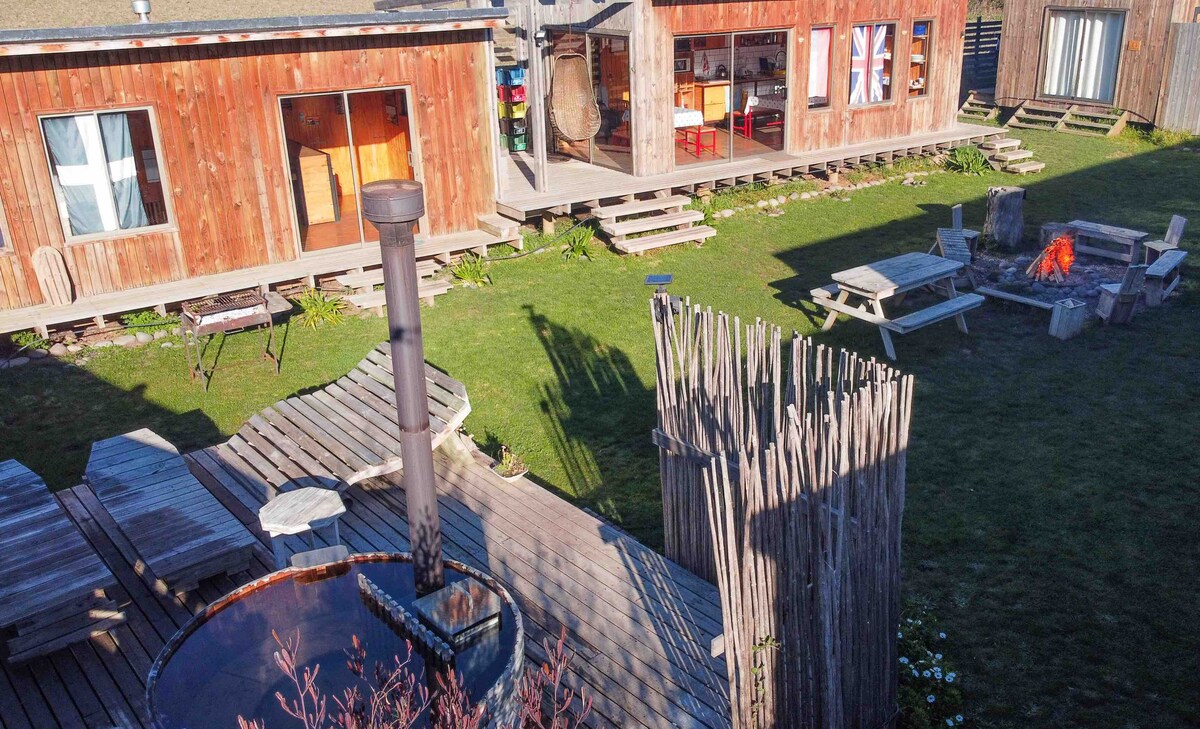 Si alguna vez soñaste con jacuzzi, parrilla, estar a 5 minutos de la playa y el río, cama elástica, gimnasio, huerta, mesa de ping pong, taca taca, tus gallinas, arenal, casa de muñecas, hamacas, dardos y juegos de mesa... SOMOS EL LUGAR PARA TI🌊😍🏄🌿 Un paraíso para tu familia, en un entorno seguro donde todos juegan por horas y los padres realmente descansan. Tomate un tiempo y disfruta de unas vacaciones inolvidables entre campo y playa Extra de pago: kayak, SUP, telescopio, bicicletas