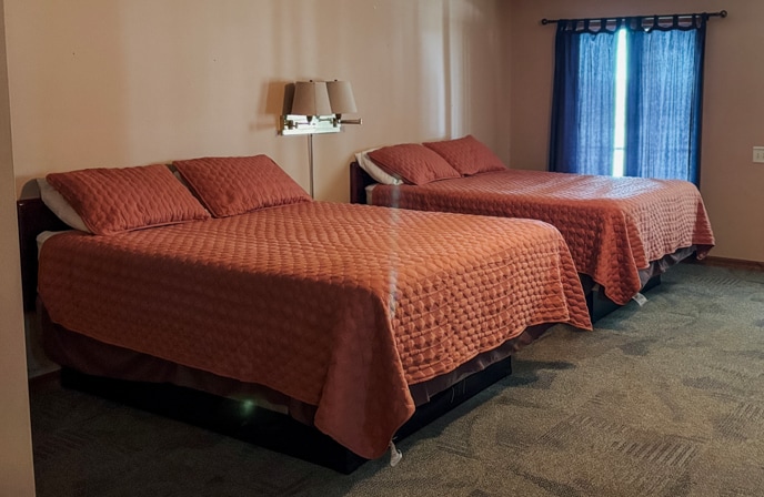 エクエストリアンルームには、フルバスルーム付きのクイーンベッドが2台あります。料金120.00ドルは、1人または2人でのご宿泊に基づいています。2名様以上の場合、1名様1泊あたり20ドルの追加料金がかかります。 客室には50インチ薄型テレビ、Wi-Fi、ミニ冷蔵庫があります。料金にはコンチネンタルブレックファーストと消費税が含まれています。朝食はコーヒー、紅茶、ジュース、クリーマー、フルーツです。 セルフチェックインが予約日の午後10時前に手配/予約されていない限り、午後10時以降のゲストの予約やチェックインは承認されません ペットの同伴は●お断りします