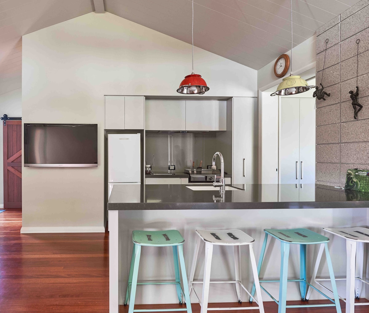 Titiwaiは、50ヘクタールのゲート付きの自然保護区にある、建築的に設計された素晴らしいユニークな空間です。 この静かな家はスタイリッシュで現代的で、地元のアーティストや職人による多くのデザイナーの特徴、家具、備品を賞賛しています。 大きなスライドドアが背面と正面全体を開き、広々としたデッキへの屋内と屋外の流れを作り出し、そこからは造園されたネイティブガーデン、座席、ブッシュトラックへと続きます。 海岸と沖合の島々の景色は息をのむほど美しいです。