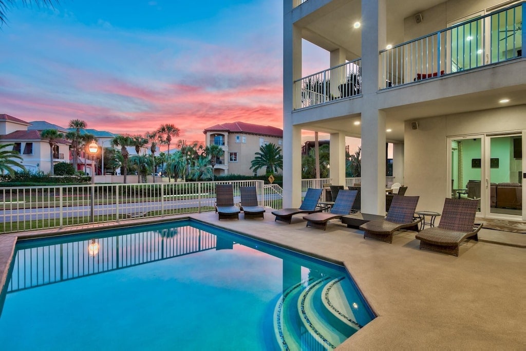 宿泊先のハイライト -湾岸の眺め/建物を囲むバルコニー - プライベートプールとグリル コミュニティプール - 寝室5室、寝室5室 ゲート付きコミュニティ 1階 ゲスト用寝室:クイーンサイズベッド、シャワー/バスタブのコンボ付き専用バスルーム ゲストルーム - 二段ベッド2台(フルベッド2台、クイーンベッド2台、専用バスルーム付き)。 2階: -引き出しソファ付きキングスイート キッチン・リビングエリア 【3階】 - 洗濯機 キングマスターベッドルームスイート/専用バスルーム - クイーンベッドのスイート/専用バスルーム
