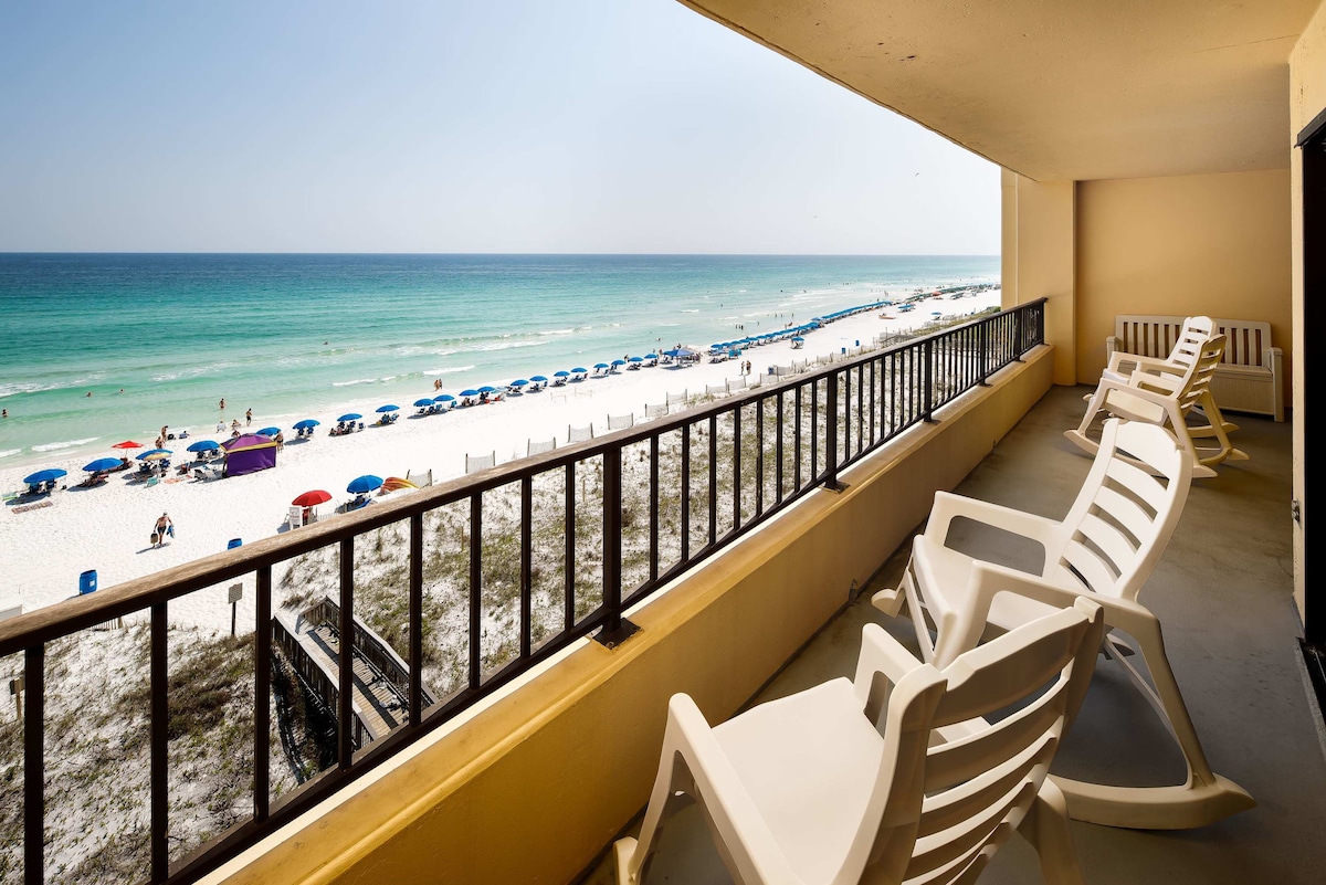PRIME LOCATION. CORNER UNIT. 8th floor 24/7 front desk & security. Heated pools. more than 30days call for special pricing. Across the street from Big Kahuna's water park. We have the best view of the beach! Sleeps 6 . 2 high end queen sleeper sofas. It’s like sleeping on a real bed. king bed in the master, twin bunk beds in the hall. Good for families, couples, solo adventurers, relaxing vacations. Steps away-marina, waterpark ,shopping. Only unit directly on Beach with washer dryer