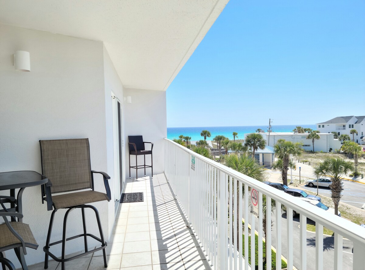 ビーチフロント、バリアアイランドチェーン、サウンドエリアの美しい4階バルコニービュー! 非常に便利な白い砂浜へのアクセスと豪華なエメラルド色の海! 屋内・屋外プールと敷地内のジムをお楽しみください。 このビーチコンドミニアムは、オカルーサ島の静かな端に素晴らしいロケーションにあるだけでなく、モダンな海岸をテーマにした家具も備えています。 デスティンとフォートウォルトンビーチのアトラクションは通りを数マイル歩くだけです。 ビーチでの無料の椅子と傘が含まれます!