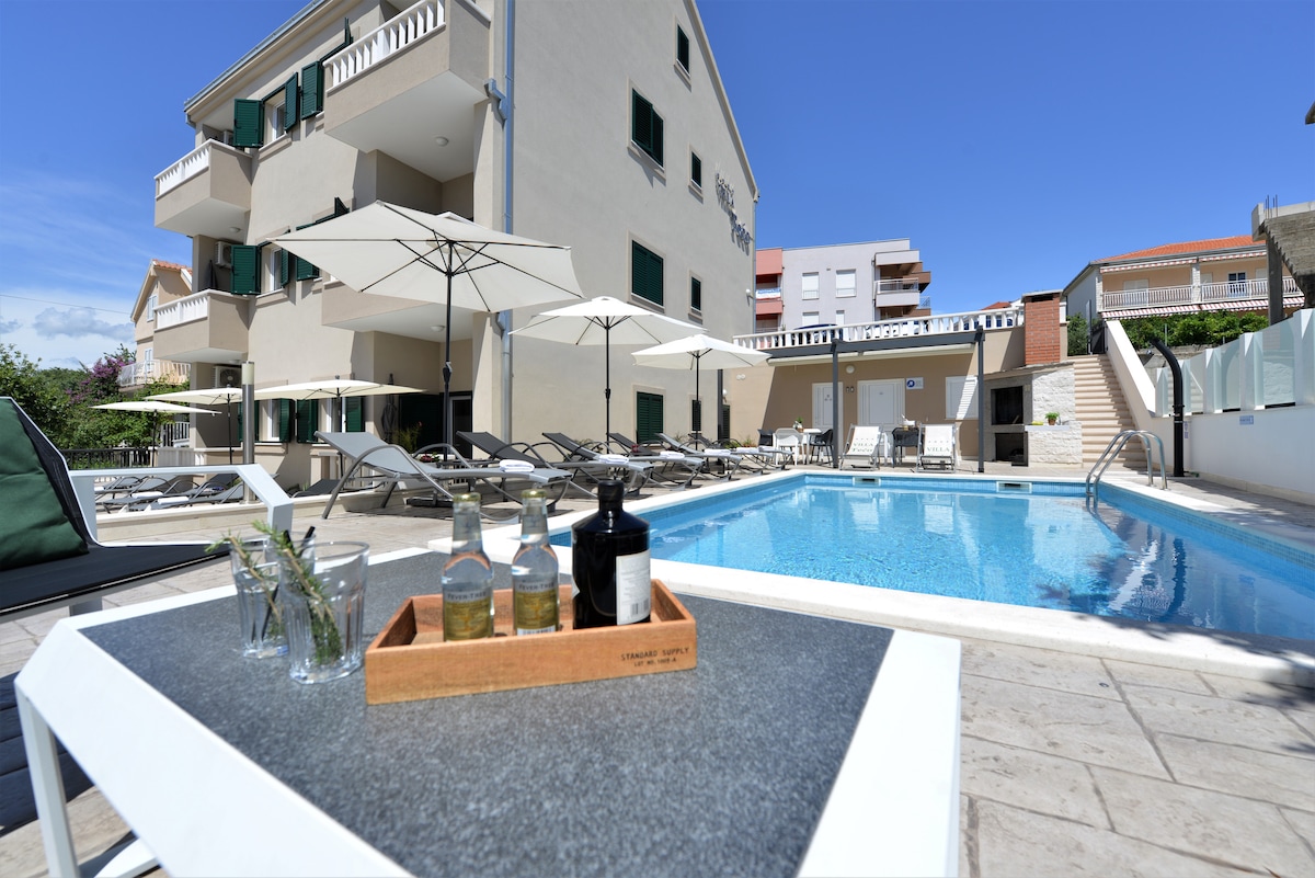 専用の屋上テラス、ジャグジー、温水プール、ブルーラグーンの素晴らしい海の景色を楽しめるモダンなアパートで、クロアチアでの完璧なビーチホリデーを体験してください。歴史的なトロギルの近く、チオヴォの平和で安全なエリアに位置するこのアパートは、完全なプライバシー、静けさ、そして真の地中海の隠れ家を提供します。 特長: • 屋上のプライベートジャグジーと夕日を眺めることができます • 温水プール(4月~10月) • 静かで安全な立地 •ビーチとトロギルの近く