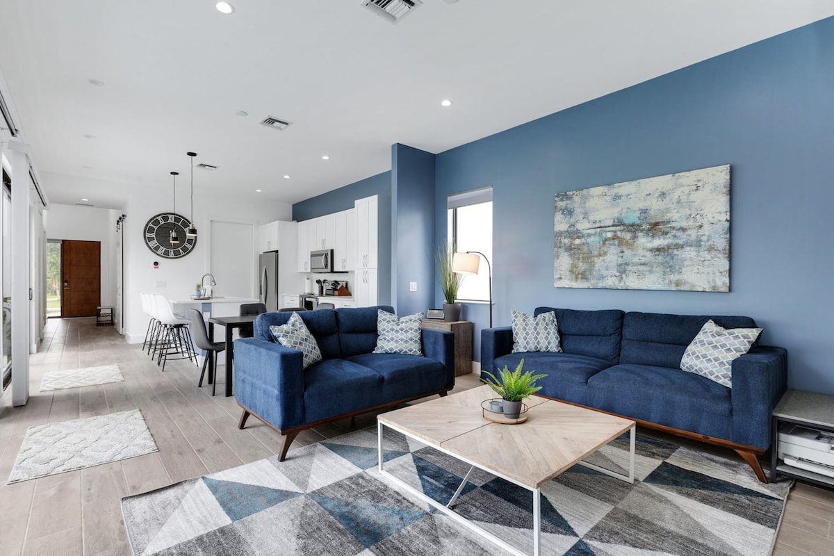 Modern 3BR/2.5BA Naples pool home in Bayshore Arts District. Sleeps 6 comfortably (up to 8 with extras). King suite, queen room, queen bunks. Garage, boat parking, washer/dryer. Walk to Ankrolab Brewing, Celebration Park, restaurants. 4 mi to beaches & 5th Ave. Close to Paradise Coast Sports Complex, US Open Pickleball, Bayview Marina. High-speed WiFi, Smart TVs, fully equipped kitchen, beach gear, coolers, grill. Naples awaits.