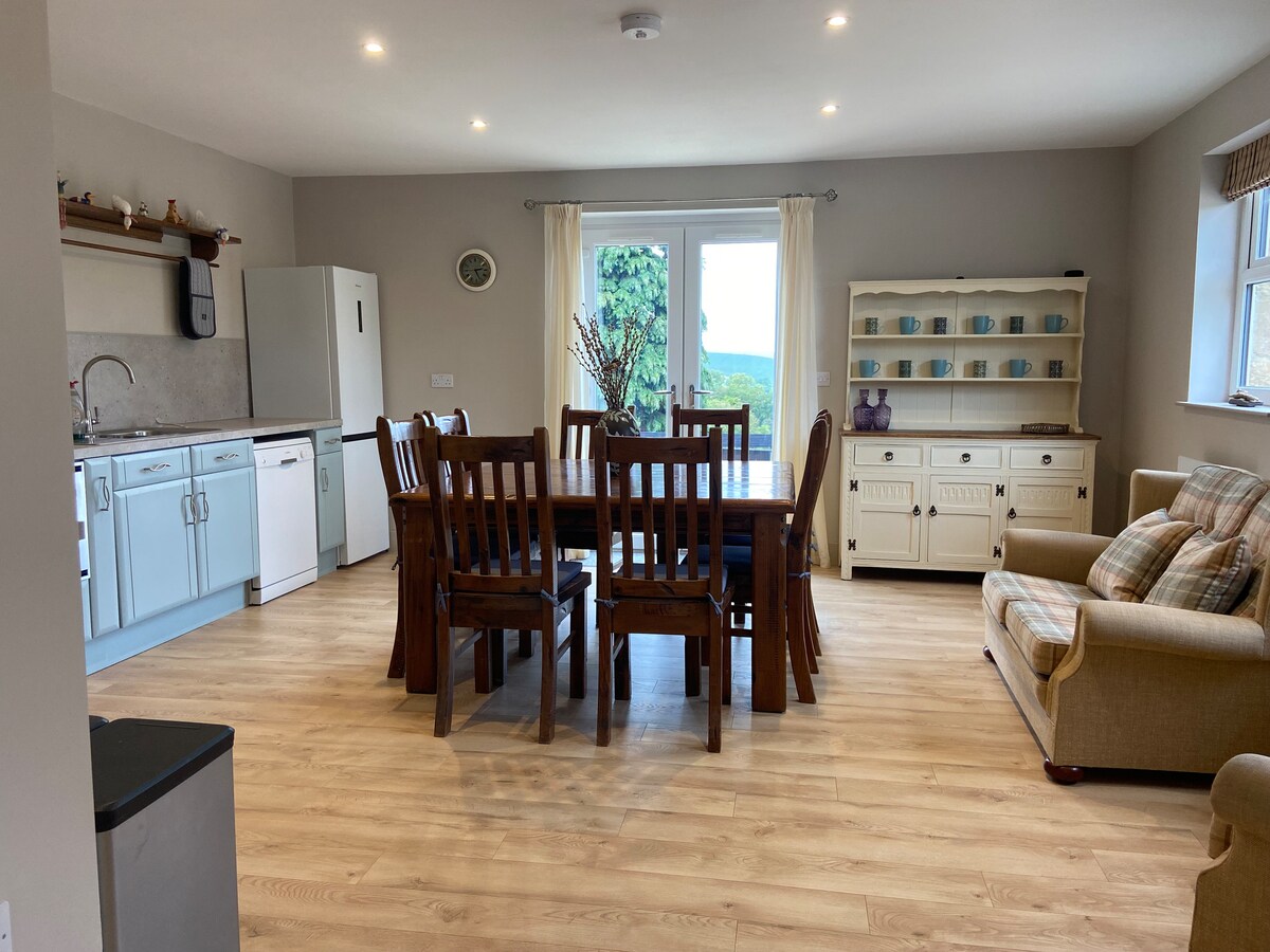 スターゲイザーアパートメントは、私道沿いにある2軒の家のうちの1軒です。静かで絵画のように美しいロケーションです。 騒音や光害がなく、ヨーロッパで最も暗い空が見られます。 オープンプランのラウンジ・キッチンと歴史的な本棚を備えた最上階全体をお楽しみください。ロールトップバスタブ、キングサイズベッド、専用バスルーム付きの寝室。素晴らしい空間です! 素晴らしい景色が楽しめる美しいガラスのアトリウムを経由した別の入り口。専用の星空観察テラス &望遠鏡 ゲストは最大2名まで 共有庭園。 ペットの同伴は事前にご相談ください。