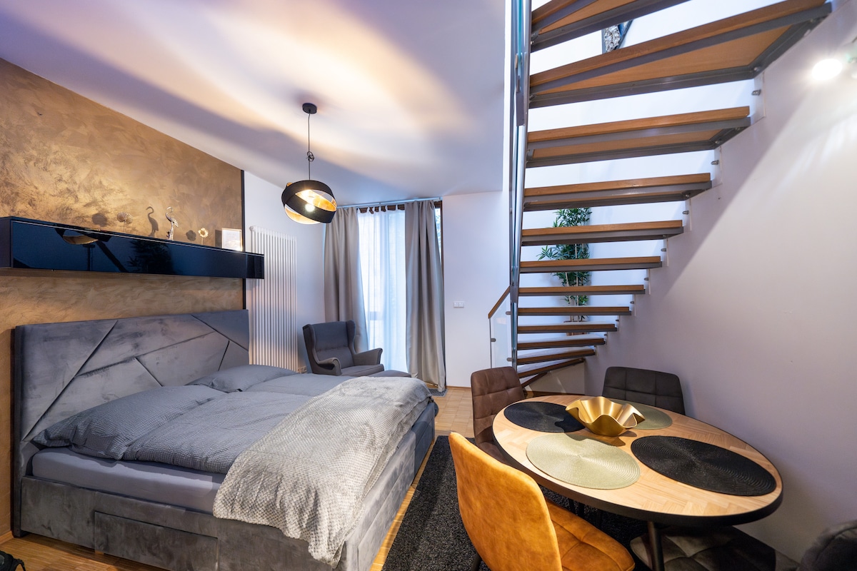 Charles Bridge近くのヴィンテージなダブルベッドルーム