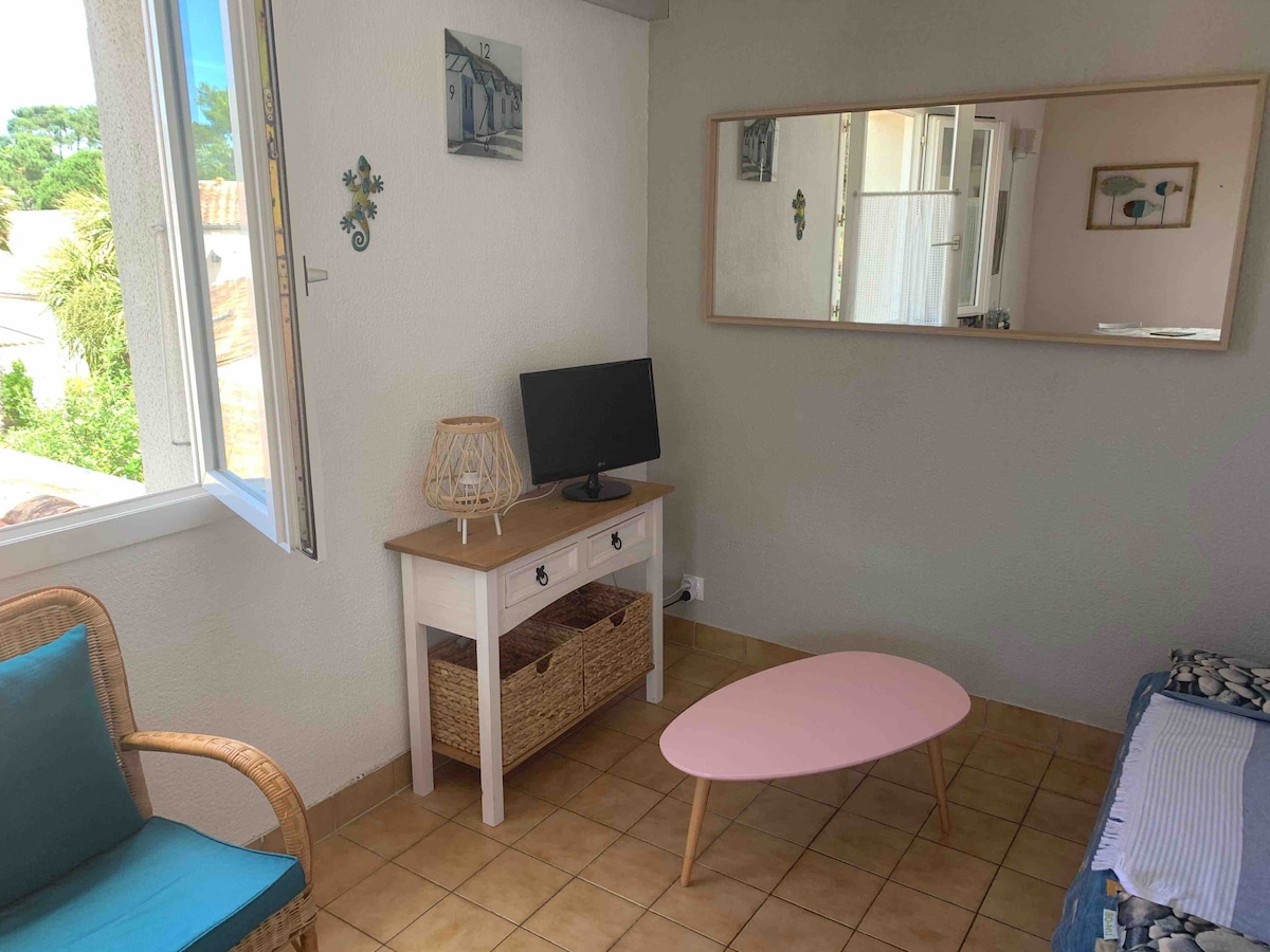 居心地の良い26平方メートルの小さなアパートメントは、寝室1部屋、キッチンエリアとリビングルーム、シャワールームとトイレを備え、2名様に最適です。 専用駐車場(デジコード)、プール(15/06から15/09)、テニスコート、ペタンク場を備えた住宅の1階に位置しています。 南向きの17平方メートルのテラスからは松林が見渡せます。 大きなヴェルトボワビーチは700m、大西洋側。 森の端に位置し、自転車道に直接アクセスできます。 すべての商店街は2.5キロ。