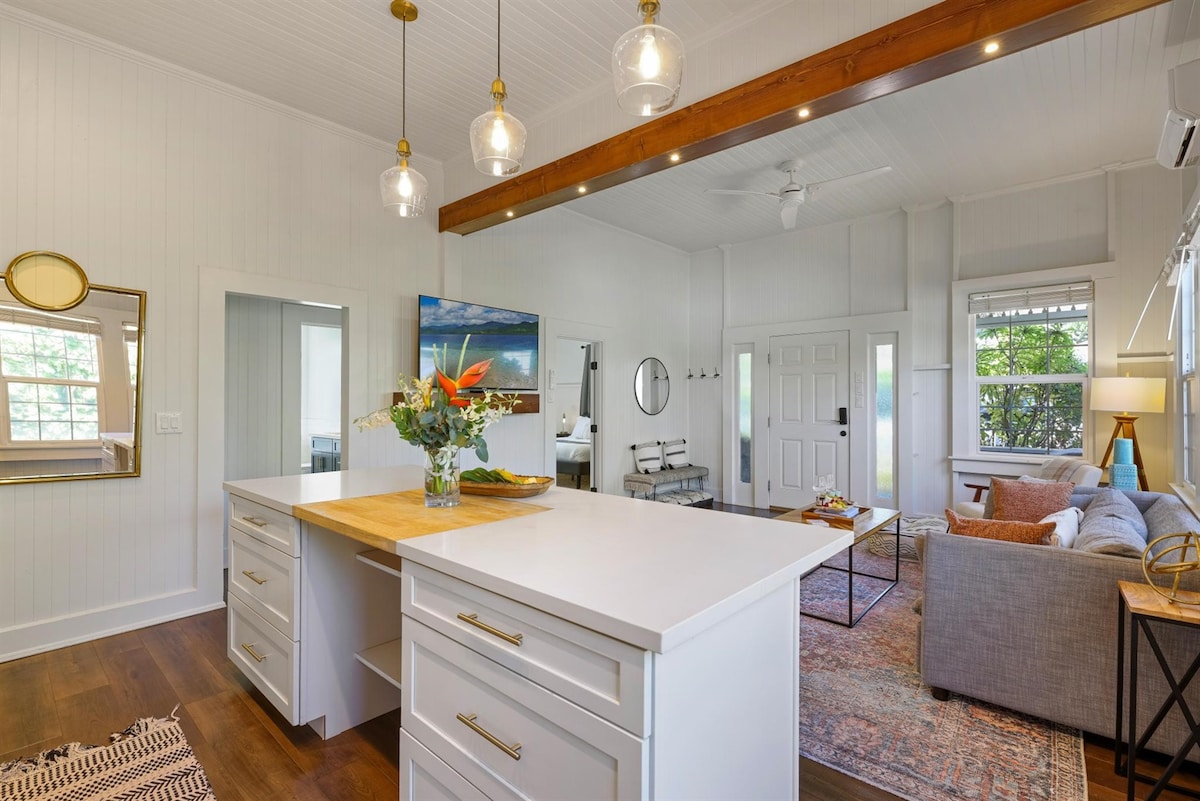 歴史あるワイルクの1930年代のプランテーションハウスを改装したThe Blue Door on Church Streetで本物のマウイを体験しましょう。この1ベッドルームのヴィラには、キングサイズのネクターベッド、メモリーフォームのソファベッド、スパ風のバスルーム、設備の整ったバーエリアが備わっています。敷地内の赤外線サウナを楽しみ、カフェ、レストラン、ショップまで歩いて行けます。イアオ渓谷、ビーチ、マウイ島の人気観光スポットの近くに位置しており、冒険やリラクゼーションに最適な拠点です。