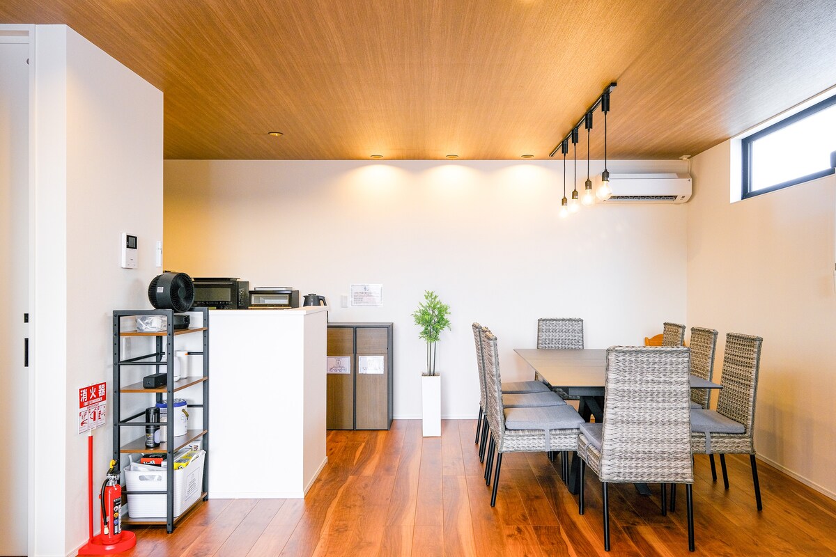 340床ãªãŒã·ã£ã³ãã¥ãŒã®åŽã®äžã«ç«ã€2022幎9ææ°ç¯ã®äžè»å®¶ã çŽ100平米ã®ãã¹ãŠã®éšå±ããªãŒã·ã£ã³ãã¥ãŒãã客æ§ã®äœ¿çšå¯èœãšãªã¢ã¯2éã®å®¿æ³æœèšãšã3éå±äžã®ããŒããã¥ãŒãã©ã¹ã§ãã åéšå±ã«50ã€ã³ã以äžã®ãã¬ãããªãã³ã°ã«ã¯4Kãããžã§ã¯ã¿ãŒãšå€§åã®ã¹ã¯ãªãŒã³ããããæ ç»éè³ãå¯èœã§ãã å€é段ããã€ãªããå±äžã«ã¯ããŒããã¥ãŒãã©ã¹ãããããµã³ã©ã€ãºããæ¥äžã®ãªãŒã·ã£ã³ãã¥ãŒãã倿¹ã®ãµã³ã©ã€ãºããå€ã®å€æ¯ãšæç©ºãæã楜ãããŸããæµ·ãèªç¶ã®æ¯è²ã«çãããŸãã å±äžãã©ã¹ã«ã¯ãã€ã¬ãå®åãããŠããããããã³ã¹ããŒã¹ãæŽãå ŽãããããŸããã³ã³ã»ã³ãã¯8ã€æããIHã䜿ã£ã調çãªã©ãå¯èœã§ãã 2ã€ããå¯å®€ã«ã¯ãããã«ãããã2ã€ãã€çšæãããŠãããæå€§8åæ§ã®å®¿æ³ãå¯èœã ãªãã³ã°ã«ãããœãã¡ãŒã«ãã·ã³ã°ã«ããããµã€ãºã®ã¹ããŒã¹æãã ã«ããã«ã§ããã倫婊ã§ãããå®¶æã§ãã3äžä»£ã®ãæ è¡ã§ããå§ãã§ãã åšãã¯ãšãŠãéãã§ãå€ã¯è«ã®é³è²ããã¯ããŠã®å£°ãè³ãæŸãŸãã°æ³¢ã®é³ãªã©ãèãããŠããŸãã è»ã§10åã®å Žæã«æµ·äžéè·¯ãªã©ããããããªã³ã¹ããŒãã®æ ç¹ãšããŠããå§ãã§ãã