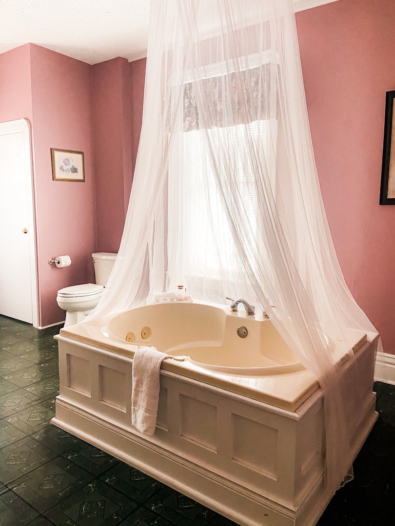 マクスフィールド・インは、ニューヨーク州ネイプルズの村にある1841年に建てられた歴史的な邸宅で、新しく修復されたばかりです。内装のヴィンテージな雰囲気に加え、美しい絵のような山々、木々、イングリッシュガーデンが本当に特別な空間を作り出しています。壮大な白い柱がファサードを飾り、ゲストは玄関ポーチで交流できます。内部は、エリアラグ、ハードウッドフロア、ヴィンテージ家具で飾られています。円形のサンポーチは朝食に最適な場所です。寝室はとても狭く、従業員の部屋だったのです。