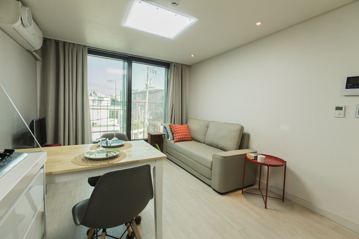 家族や友人と、温かく装飾された宿泊施設で温かく快適なひとときをお過ごしください。 宿泊施設の近くには、様々なレストラン、かわいいカフェ、素敵なバーがある、延南洞通りと弘大大通りを楽しむことができます。 また、地下鉄2号線と空港鉄道弘大駅まで5分で行けます。 明洞、光化門、景福宮、東大門。南大門市場と江南まで30分で行くことができます 最高の宿泊先です