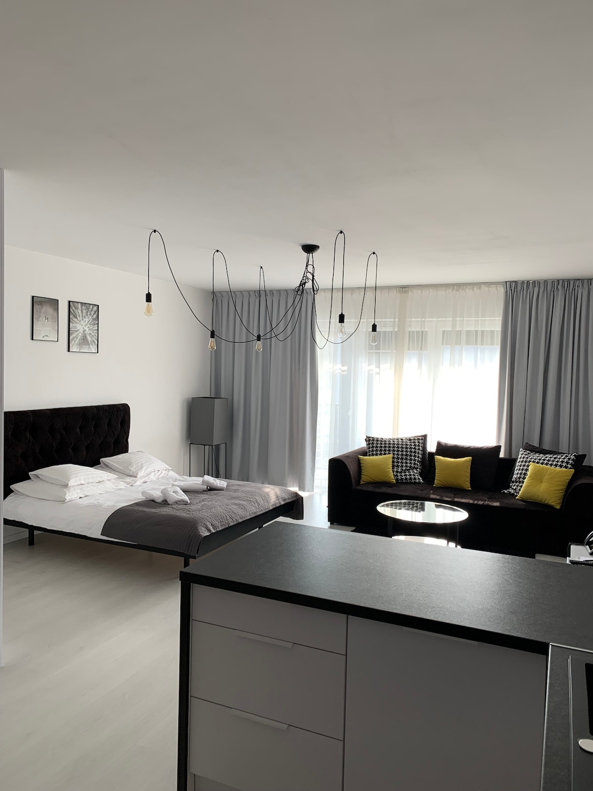 Klimatyzowany apartament z prywatnym wejściem obejmuje salon z rozkładaną sofą, oddzielną sypialnię z łóżkiem podwójnym oraz łazienkę z wanną i suszarką do włosów. Do dyspozycji gości jest aneks kuchenny z płytą grzewczą, lodówką, zmywarką i przyborami kuchennymi. Apartament posiada zestaw do parzenia kawy i herbaty, szafę, telewizor z płaskim ekranem oraz balkon.