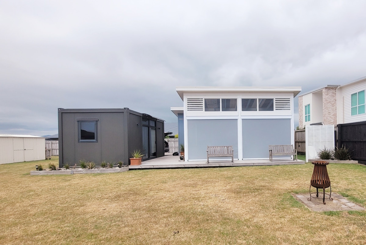 ワイオタヘビーチで楽園のような時間をお楽しみください。このモダンなタイニーホームスタイルのバックは、美しいスイミングビーチまで徒歩わずか1 ~2分です。ワイオタヘのドリフトにひっそりと佇む、長い週末を過ごすのにぴったりの宿泊先です。 ビーチハットには、超高速ブロードバンド、スマートテレビ、特大シャワー、食器洗い機、大型バーベキューなど、モダンな生活の快適さがすべて備わっています。 この広い敷地には、大家族向けに追加のテントやキャラバンを置ける十分なスペースがあります(電源あり)。犬は条件付きでOKです