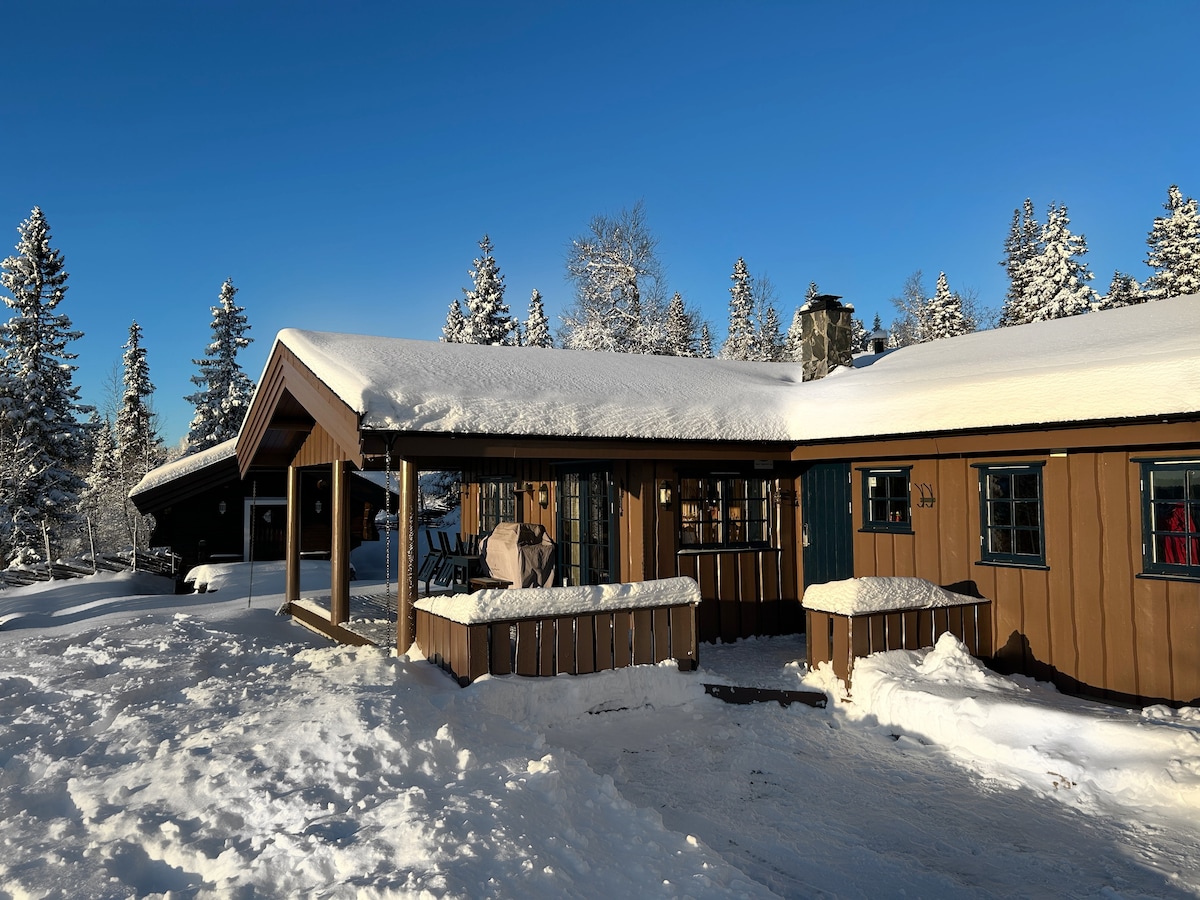 «ハリングダール»地域の伝統的な建築で建てられた居心地の良いキャビン。 日当たりが良く、屋外と屋内に暖炉があり、サウナ、素晴らしい山の景色、手作りのログアネックスがあります。 冬と夏のアクティビティに最適な場所:クロスカントリースロープとそり滑りの丘がすぐ外にあり、スキーリフトは10分先にあり、サイクリングとハイキングのルート、近くの山の農場、川での水泳、カヌーなどが利用可能です。 ベビーチェア、おむつ交換台、ベビーベッド、幼児用ベッドをご用意しております。