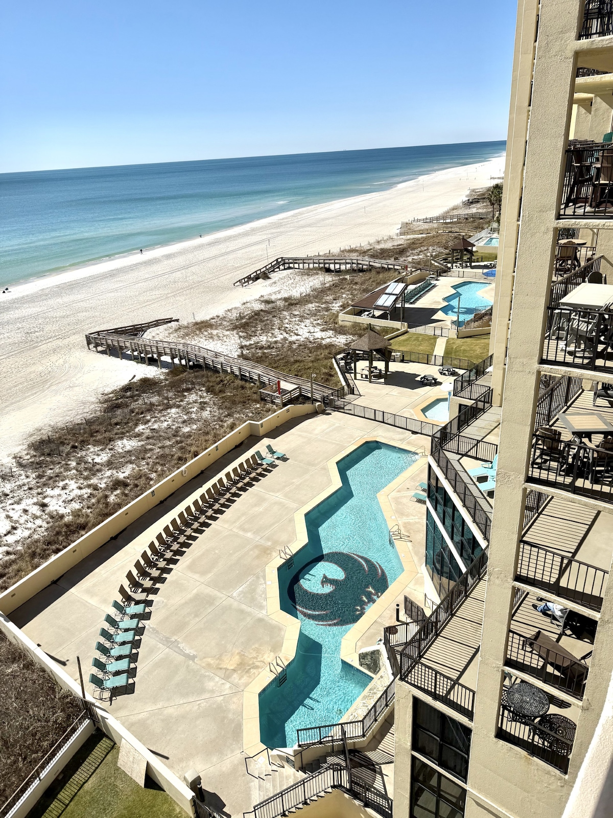 9階の専用バルコニーからガルフショアーズの魅力と息をのむようなビーチの景色をお楽しみください。 充実のアメニティが忘れられない滞在をお約束します。 ご家族連れ、仕事やスポーツイベント、ロマンチックな旅行、一人旅に最適です。 アメリカの湾に面した砂糖のような砂浜のすぐそばにあり、ステート・ピア、ハングアウト、ビーチサイドのレストランに近いので便利です。今すぐご予約ください! ***現役・退役軍人および退役軍人の方には軍人割引がご利用いただけます ロイヤルパームズ902は個人により所有・管理されています