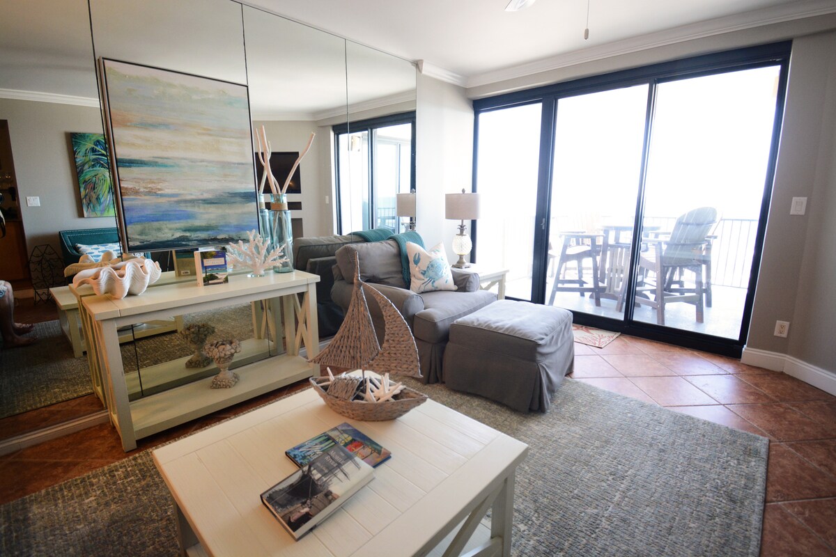 メキシコ湾を見下ろすこのビーチのコンドミニアムで、ビーチサンダルを履いてリラックスしましょう。Beach Havenには、湾岸のサーフィンの素晴らしい眺めと湾岸の景色を湾曲したバルコニーから眺めることができる最前列の席があります!さらに、屋内・屋外プール、ホットタブ、サウナをお楽しみください!憧れのロケーションは、桟橋、ガルフ州立公園&シー&サッズの近くのビーチのあまり混んでいない端にあります。カップル、一人旅、ビジネス、スポーツイベント、小さなご家族連れに最適です。*スノーバード*料金についてはお問い合わせください。 ゴージャスな夕日、波の音を楽しんでリラックスしましょう!