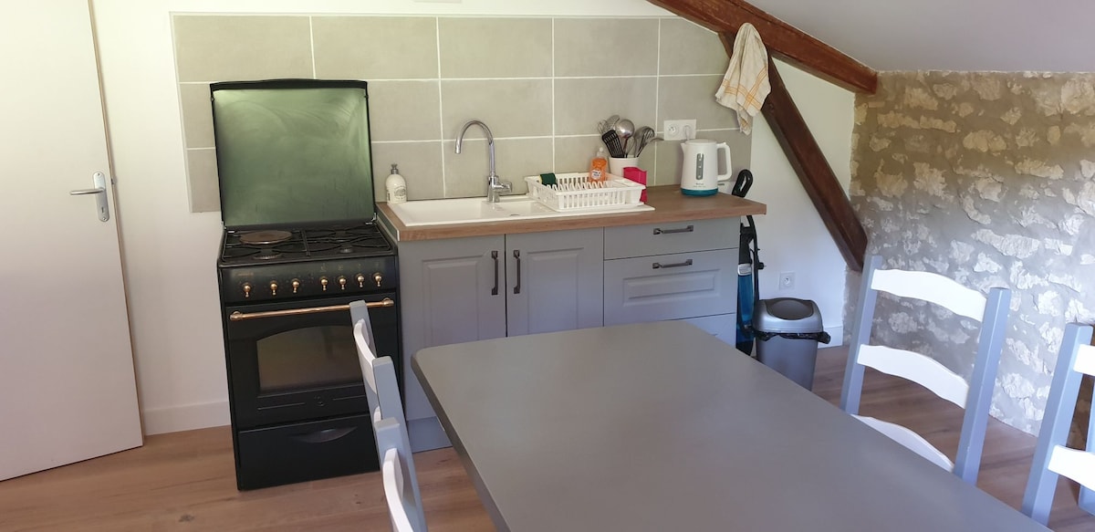 Dans un village perché sur promontoire rocheux, une maison d'hôtes entièrement restaurée dans une grange vous accueille pour des moments de détente. Vous bénéficiez d'une cuisine entièrement équipée avec lave-vaisselle. Une salle de douche avec machine à laver. Une chambre parentale indépendante ainsi qu'une mezzanine avec 2 lits en 90 cm et une banquette bz. Un espace extérieur détente avec coin repas. Recharge voiture électrique en supplément.