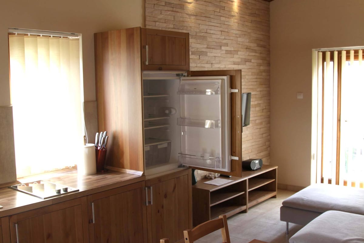 Our brand new holiday home is open for rent all year around in a safe and calm environment. Situated right next to the lake Balaton, we are 5 min walking distance from the popular Silver beach, wich is free of charge. 10 min from Kálmán Imre mall where you can enjoy many restaurants as well as other amusements. From 3 minutes walk, across the elictric railroad tracks you can find a supermarket, a pharmacy and the well known Öreg Halász restaurant.