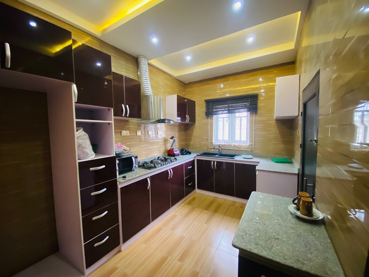 ベニンシティの高級住宅街エテテG.R.A.にある、完全に太陽光発電で稼働する寝室3部屋とバスルーム2部屋のスイートで、モダンな快適さを体験しましょう。ゲート付きの安全な敷地内にあるこの新築の5,000平方フィートの家には、大理石の床、豪華な家具、エアコン、スマートテレビ、設備の整ったキッチンがあります。太陽光発電とバックアップ発電機により、24時間電気を使うことができます。高速Wi-Fiも完備しています。人気のレストラン、ショップ、主要道路に近く、家族連れやプロフェッショナルに最適です!