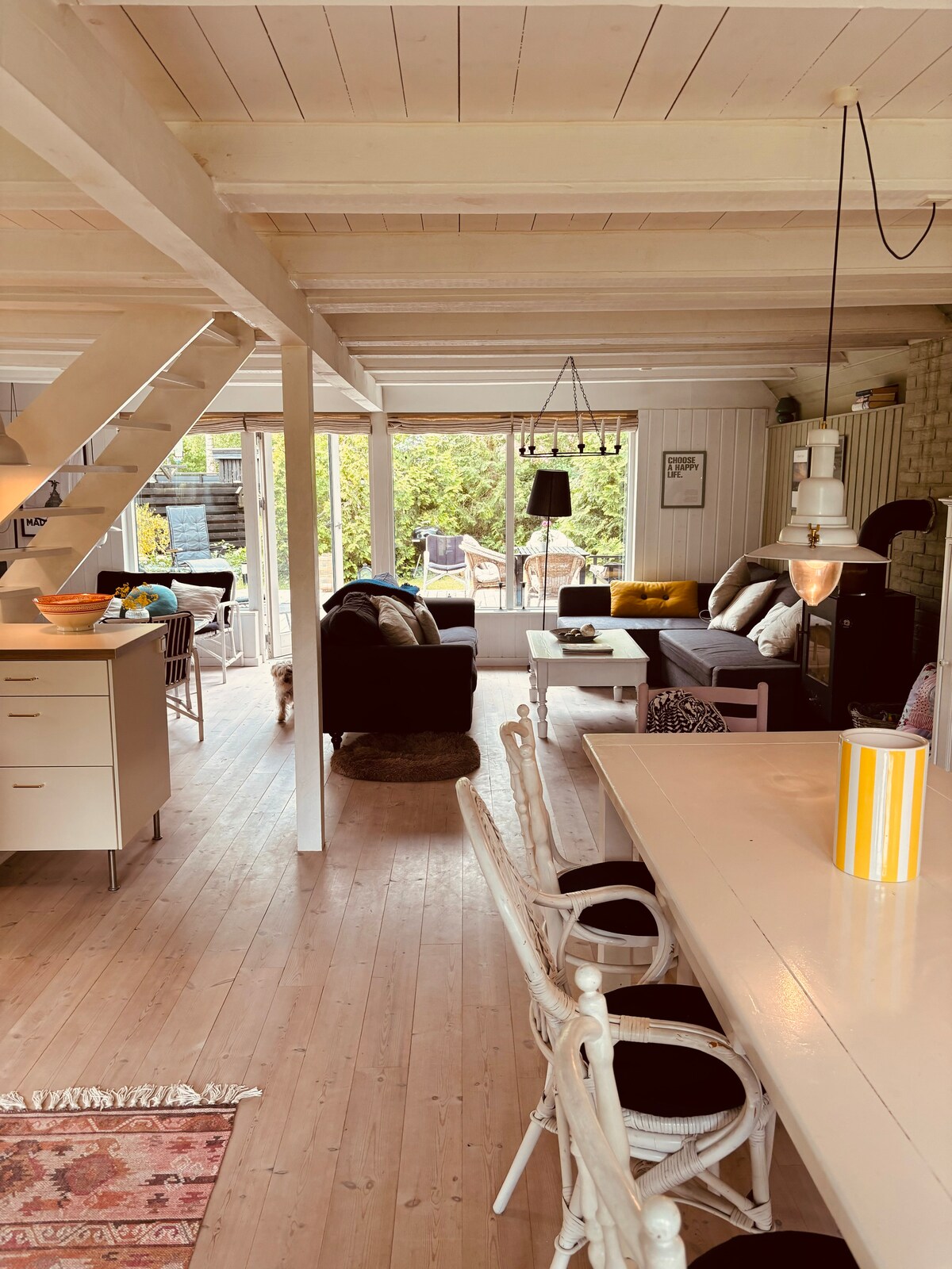 Hyggeligt sommerhus på 138 kvm med god plads til 4 voksne samt 4 børn og optil 2 spædbarn i rejseseng. Sommerhuset er nyrenoveret. Min. 4 dag udenfor sæson og 1 uge i højsæson. Slutrengøring kr. 850,- pr. ophold. Der følger en brændekurv fyld med brænde, medbring evt. selv træ. Der betales for forbrug efter måler, strøm 2,95 kr. pr kwh, vand og afledning kr. 89,- pr m3, udlejer aflæser ved tjek ind og ud og sender opkrævning af reelt forbrug via Airbnb.