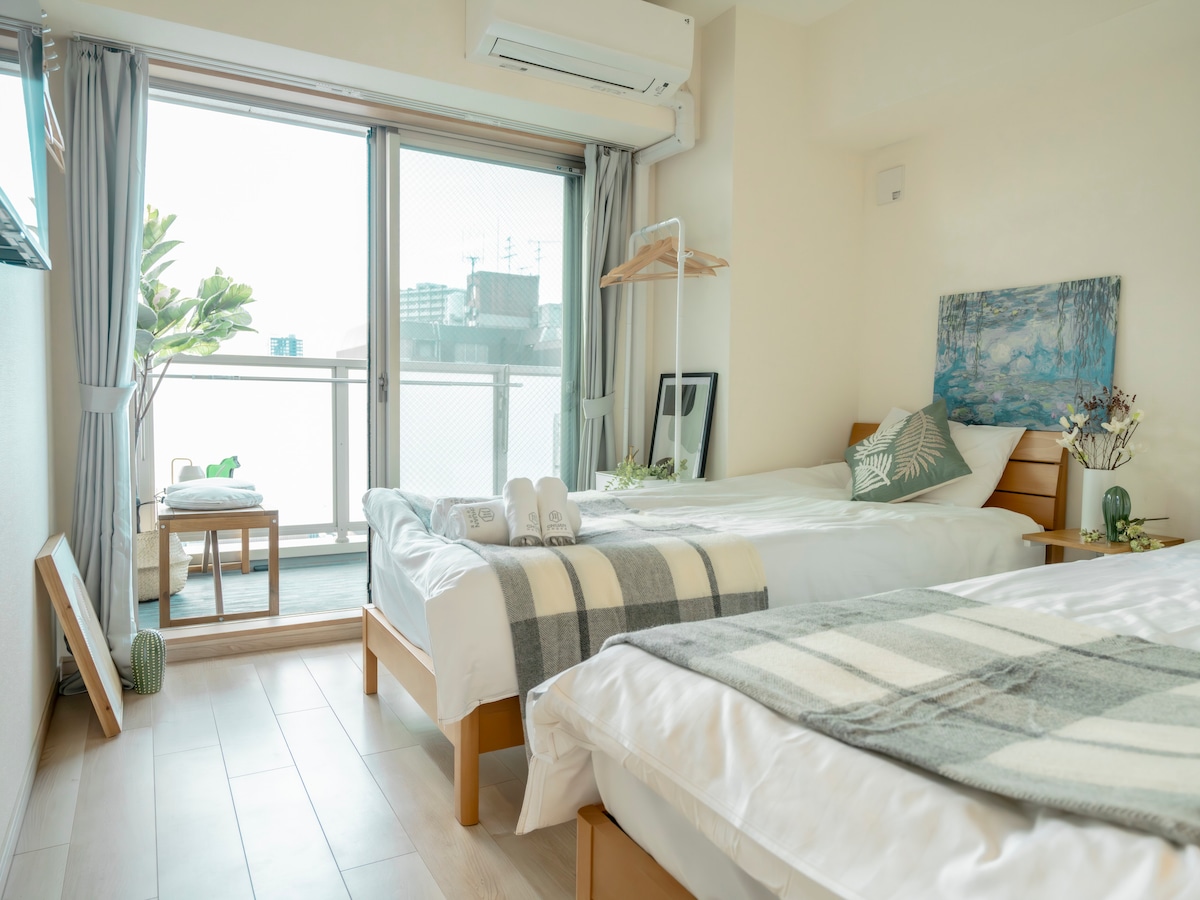 AYA-新築26年开业/双人间/大阪城公园400米/JR森ノ宮站步行400米/8分钟心斋桥/直达梅田