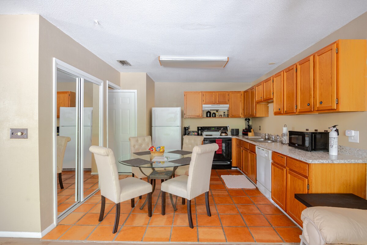 *ペットと子供連れ歓迎* *長期滞在歓迎* ゲート付きコミュニティにある2ベッドルーム2.5バスルームのタウンハウス!ディズニーまで10分、シーワールドまで20分、ユニバーサルスタジオまで30分。 コミュニティには、大きくて美しい温水プールと遊び場・バーベキューエリアがあります。 各ゲストの滞在後はプロによる清掃サービスがあります。 キッチンにはKeurigコーヒー、すべての食器、調理器具、調味料などが完備されています。 すべてのバスルームには、洗面用具と予備のタオルが充実しています。 パティオには椅子、ガスグリル、シッティングエリアがあります。