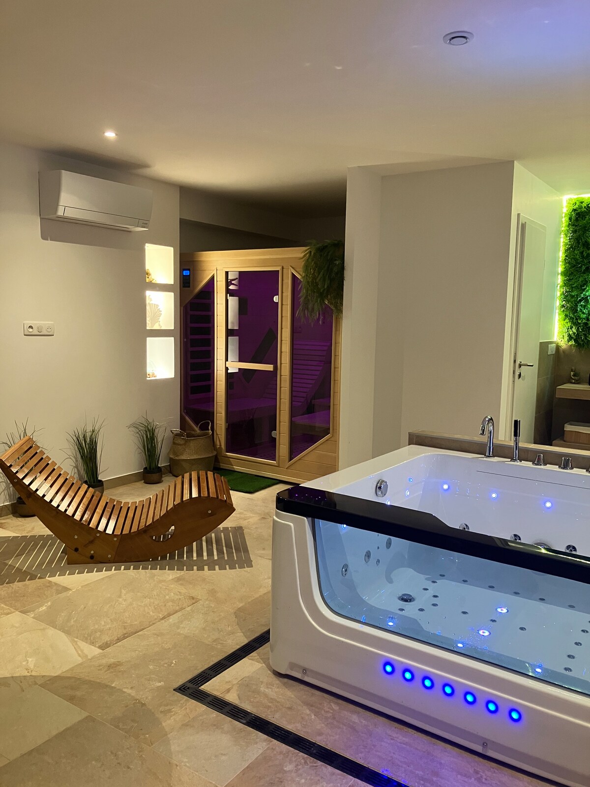 🌸 モダンで居心地の良い80平方メートルのアパート – 4つ星評価 家族連れでも友人同士でも、リラックスして、共有し、ご滞在を満喫していただけるように設計された宿泊先です。 🪷 プライベートサウナと屋外温水ジャグジーを備えたウェルネスエリアで、一年を通してリラックスした休暇をお過ごしいただけます。 👉 スパのご利用:ご滞在中いつでも、一律料金€50でご利用いただけます。 🎮 レトロなアーケードゲーム機、楽しいアメニティ、家具が完備されたテラスなど、レジャーとエンターテインメントが満喫できます。