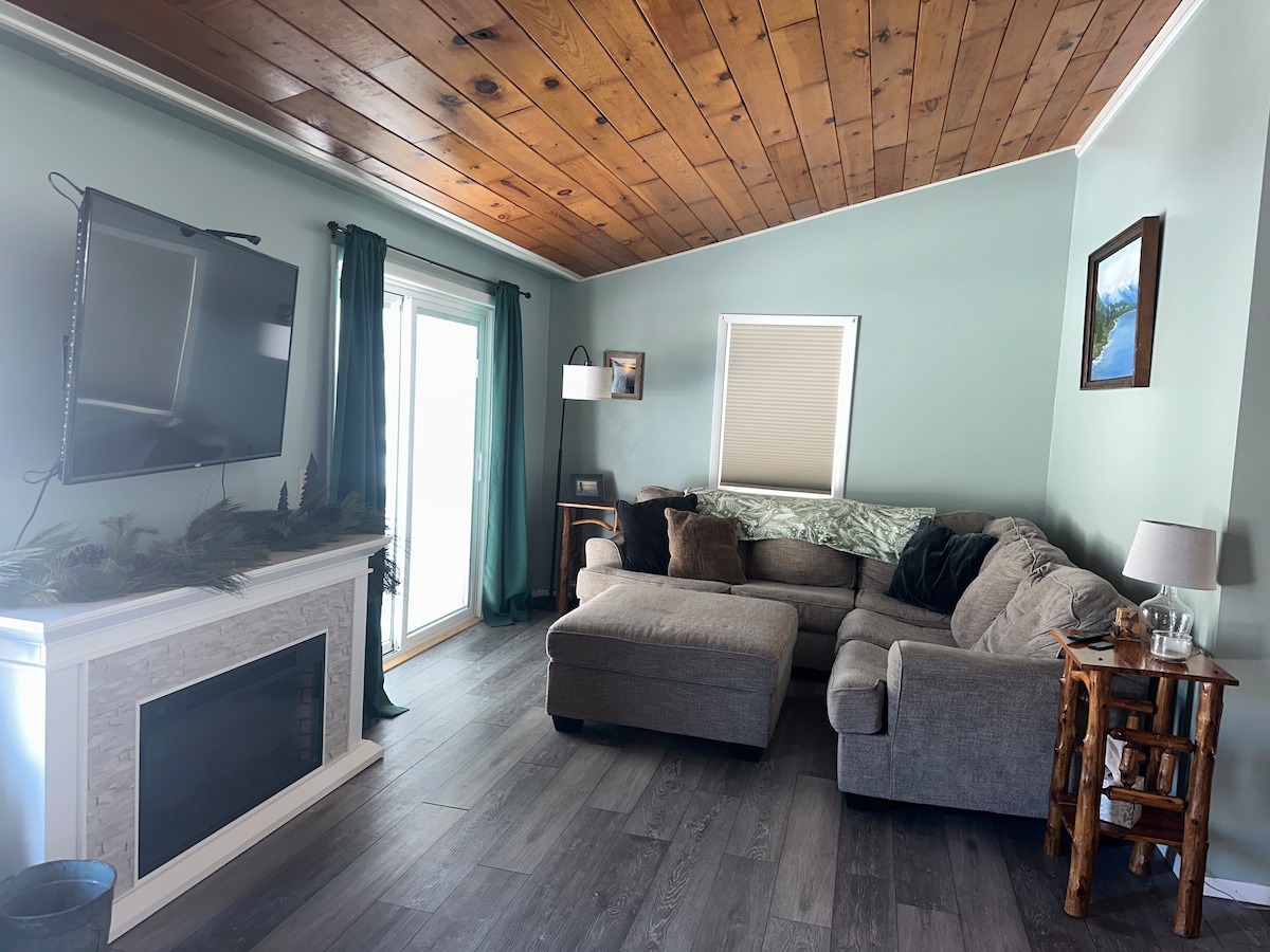 この高級1ベッドルームアパートは、エリアのホテルの客室よりもはるかに優れており、無料Wi-Fi、50インチと32インチのROKUテレビ(お気に入りのアプリを使用)、Spectrumアプリを介したケーブルテレビ、DVD/CD/ブルーレイプレーヤー、ビデ、洗濯機と乾燥機のコンボ、ジャグジーバス、設備の整ったキッチンが備わっています。最高のキングサイズベッド、ワードローブ/クローゼット、引き出し、ナイトスタンド、バスルーム、使いやすいクイーンサイズのソファベッド付きのリビングルーム。ガス、電気、水道、除雪、駐車場、本物のハードウッドフロア、タイルのキッチン/浴室。長期滞在の場合は大幅な割引があります!