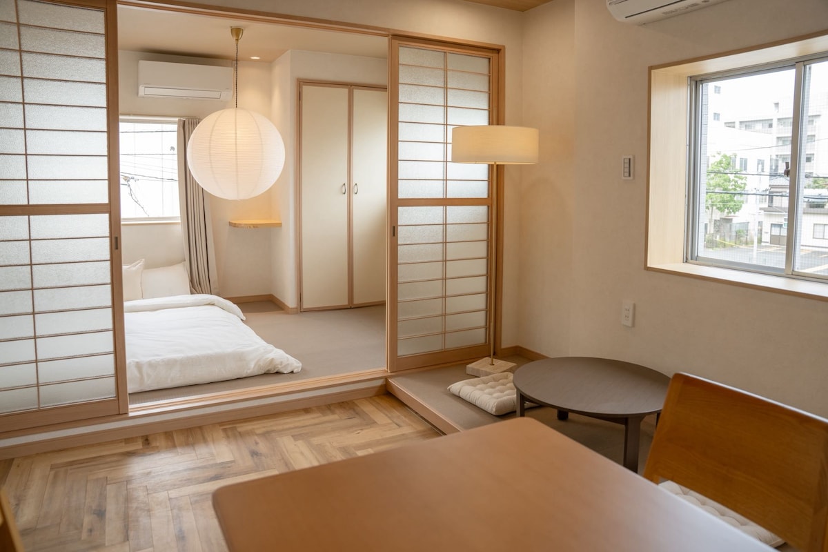 当宿は、素晴らしい空間を提供する5つ星ホテルの『アマン東京』にインスパイアされ、洗練された『和』のイメージをバケーションレンタルに取り入れました。 日本の伝統美を感じていただけるようにデザインしています。 ◆高級マットレス『シモンズ』キングサイズベッド ◆木、和紙、石など日本古来の自然素材を用いたインテリア ◆日本人書道家の作品 ◆静かな空間 ◆羽田空港までタクシーで15分 ◆品川駅まで電車で24分 当宿はゆっくりと長期滞在したい2名様にぴったりです。 羽田空港や都心へのアクセスが良く、落ち着いた雰囲気が魅力の西糀谷は、ふたりで静かに過ごしたいカップルにぴったりです。 昔ながらの商店街や地元のカフェ、銭湯などが点在し、暮らすように旅する心地よさを楽しめます。 近くの公園でお散歩やピクニックもでき、都会の喧騒から少し離れて、ゆったりとした時間を過ごせる場所です。 当宿でご自宅のようにくつろぎながら、日本各地の魅力を探求し、新しい発見と感動に満ちた旅をお楽しみください。