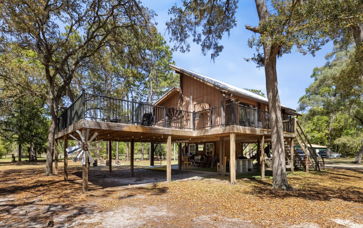 私たちの1ベッドルームのコテージは、25エーカー以上の美しいフロリダの自然の海岸の真ん中にあります。人里離れた場所にありますが、室内配管や温水、エアコン、Wi-Fiなど、自宅のような心地よさを味わえます。 テレビにはFirestickがついていますので、ストリーミングアカウントを持参して、屋外の焚き火台でスモアを焼いた後は、夜をリラックスしてお過ごしください。折りたたみ式のスリーパーソファを使えば、2人用のコテージを数分で4人用にすることができます。トレーラーをお持ちの場合でも、駐車場は問題ありません。